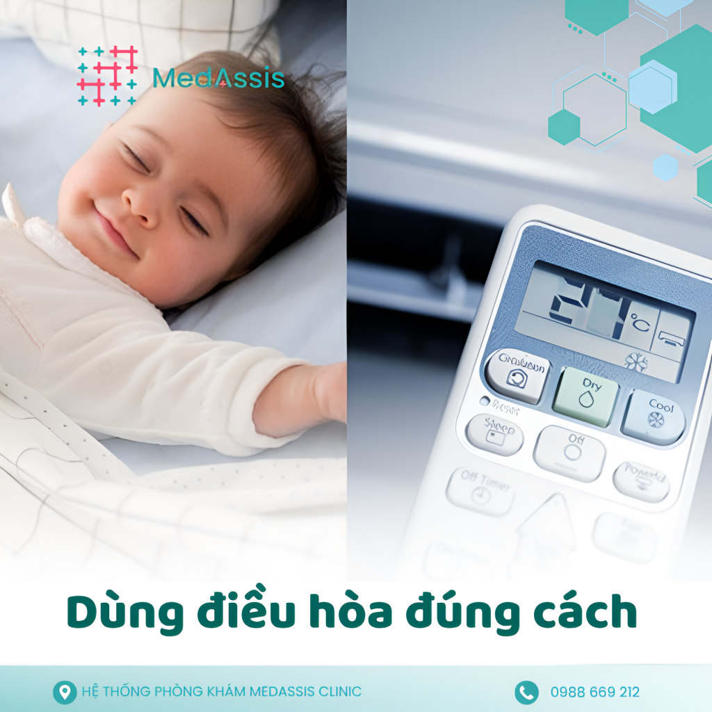 Nhiệt độ lý tưởng thường dao động trong khoảng 27–28°C, vừa đảm bảo làm mát vừa tránh gây sốc nhiệt. Bên cạnh đó, độ ẩm trong phòng cũng cần được duy trì ở mức phù hợp, khoảng 40–60%, nhằm hạn chế tình trạng khô niêm mạc mũi họng.