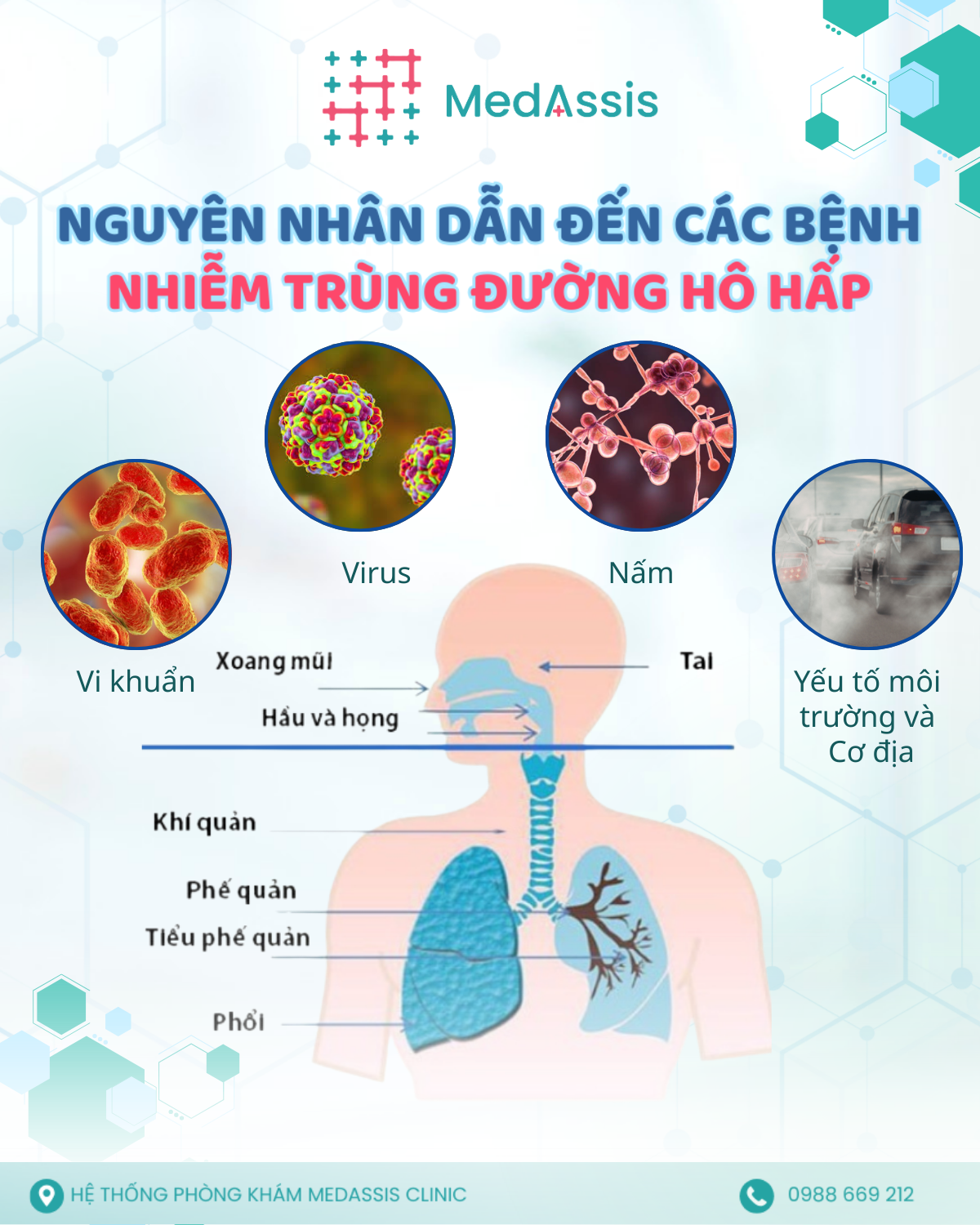 Hệ hô hấp của con người liên tục tiếp xúc với môi trường bên ngoài mỗi ngày. Trung bình, một người hít thở khoảng 15.000–20.000 lần/ngày, đồng nghĩa với việc đường thở luôn phải đối mặt với hàng triệu vi sinh vật, hạt bụi, chất kích ứng và tác nhân gây hại. Khi hàng rào bảo vệ tự nhiên của cơ thể bị suy yếu hoặc tác nhân xâm nhập đủ mạnh, nhiễm trùng sẽ xảy ra.